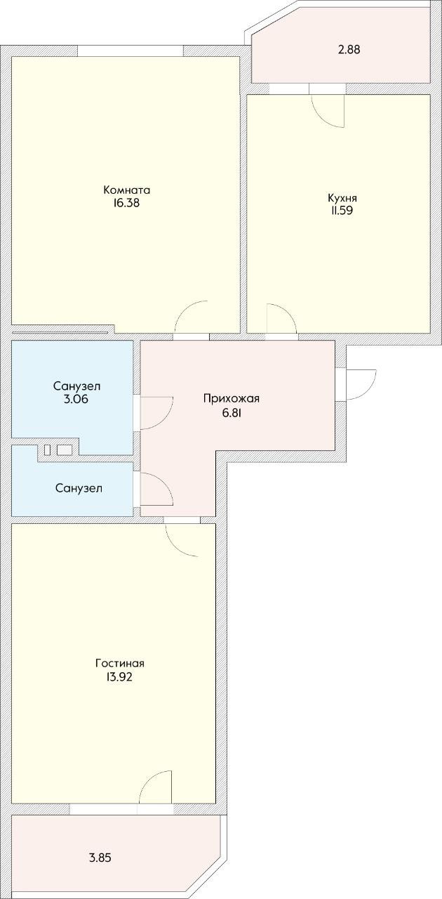 Общая площадь 56.81 м2