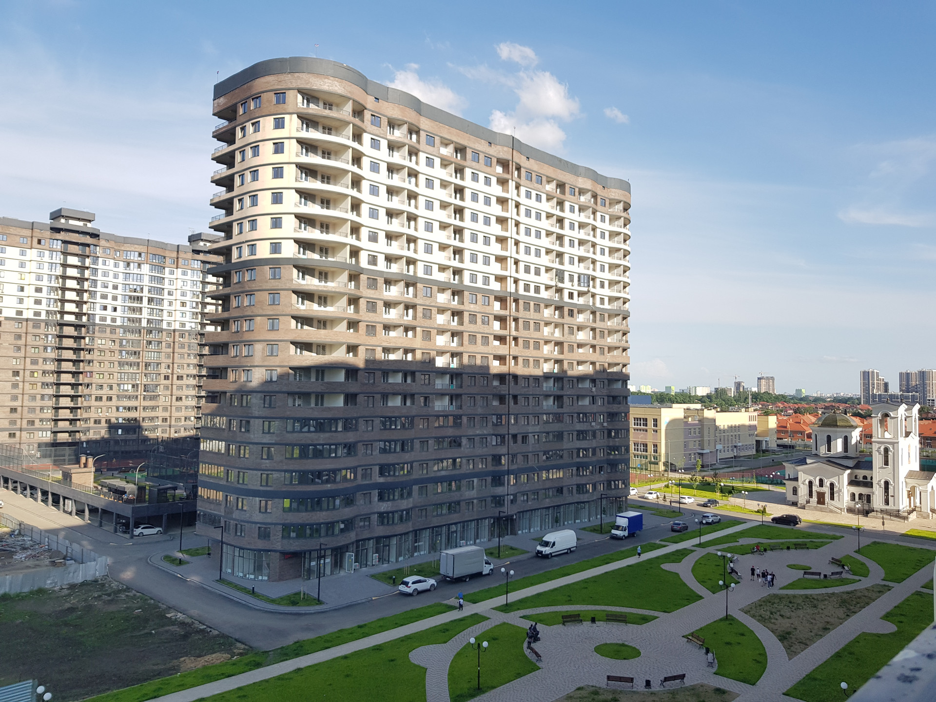 Район новый активно развивающийся. На территории комплекса Школа, Часовня, Гипермаркет открывается в конце сентября 2023, уже начато строительство Комплекса детских садов (три детских сада по 300мест), рядом запланировано строительство поликлиники и еще одного  гипермаркета.
