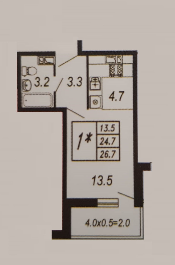 Общая площадь 26.7 м2