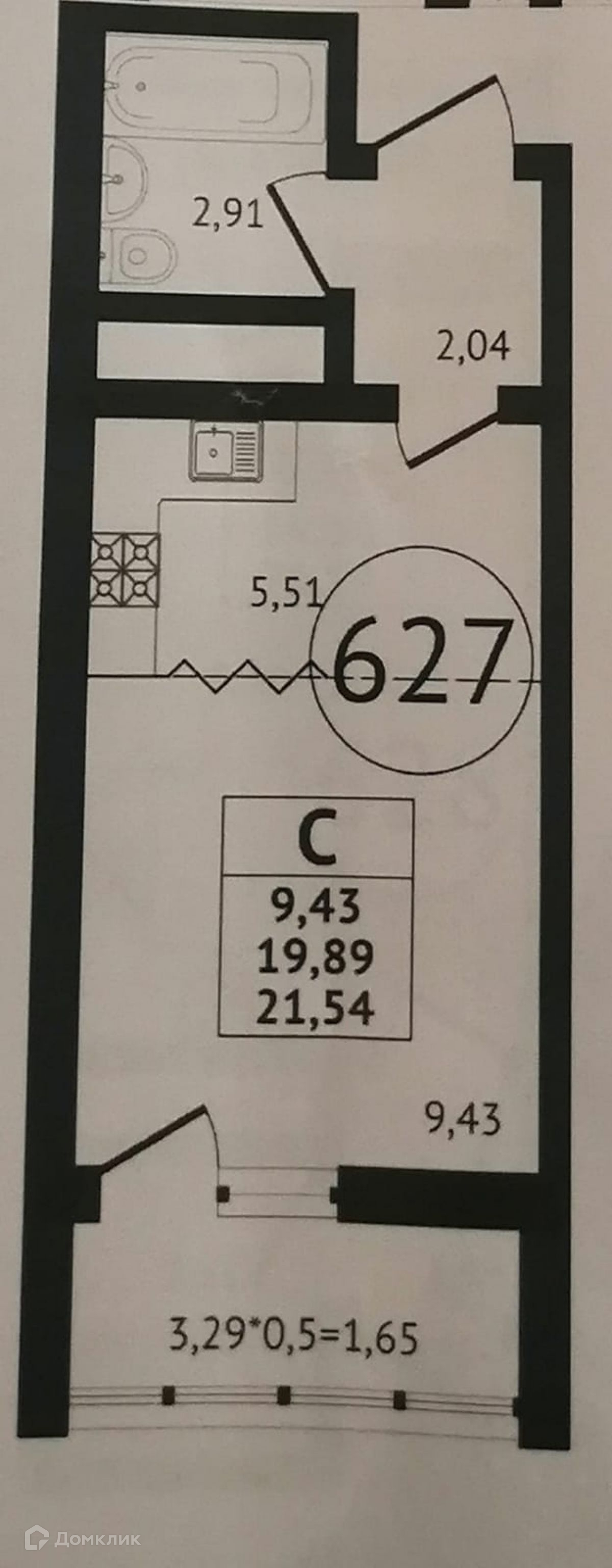 Общая площадь 21.5 м2