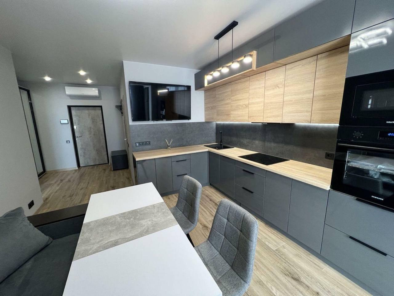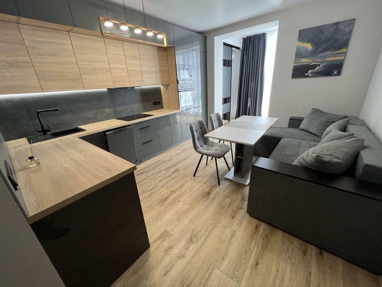 Современная кухня оборудована всем необходимым, чтобы приготовить вкусные блюда.  Здесь вы можете расположиться в любое время дня и наслаждаться приятной атмосферой и вкусными блюдами.
