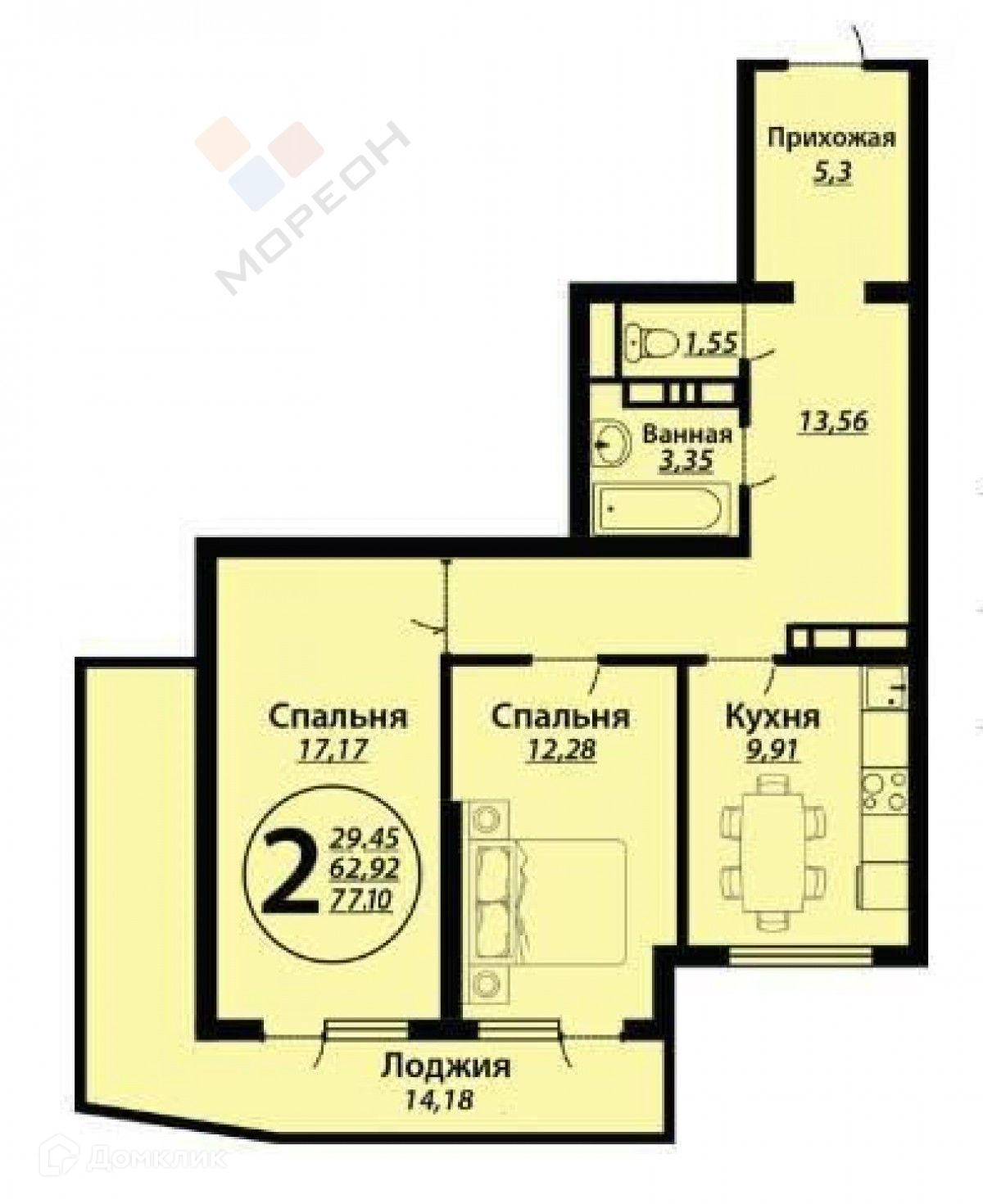 Количество комнат 2