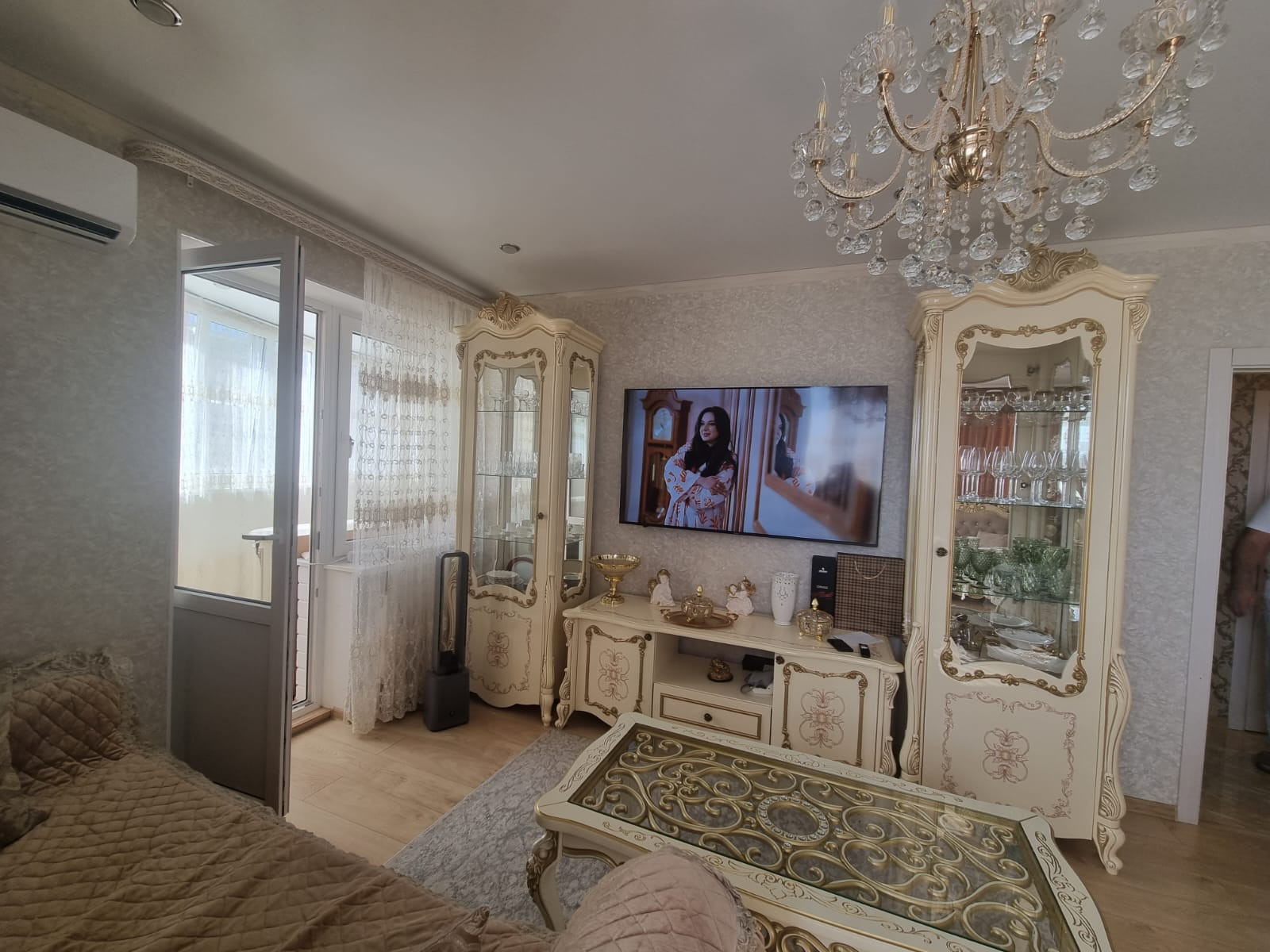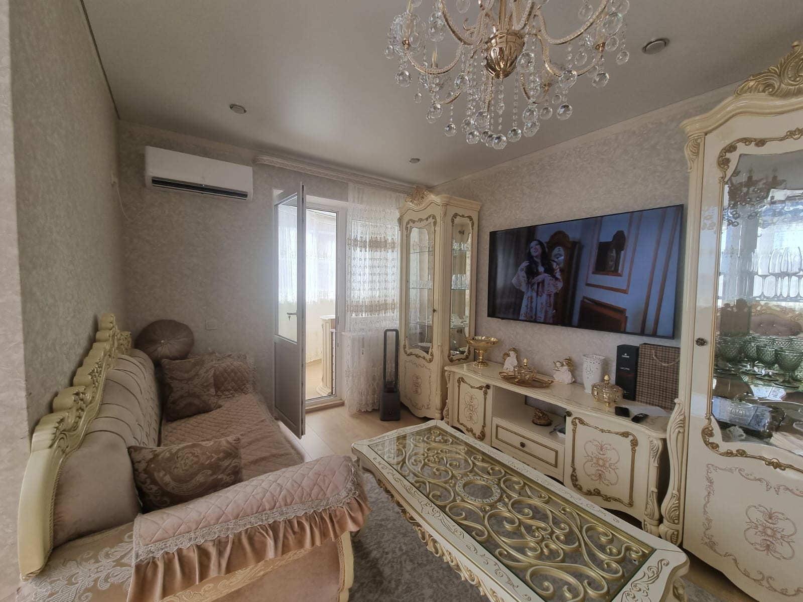 Большой зал- гостинная,  спальная комната и большая остекленная лоджия.