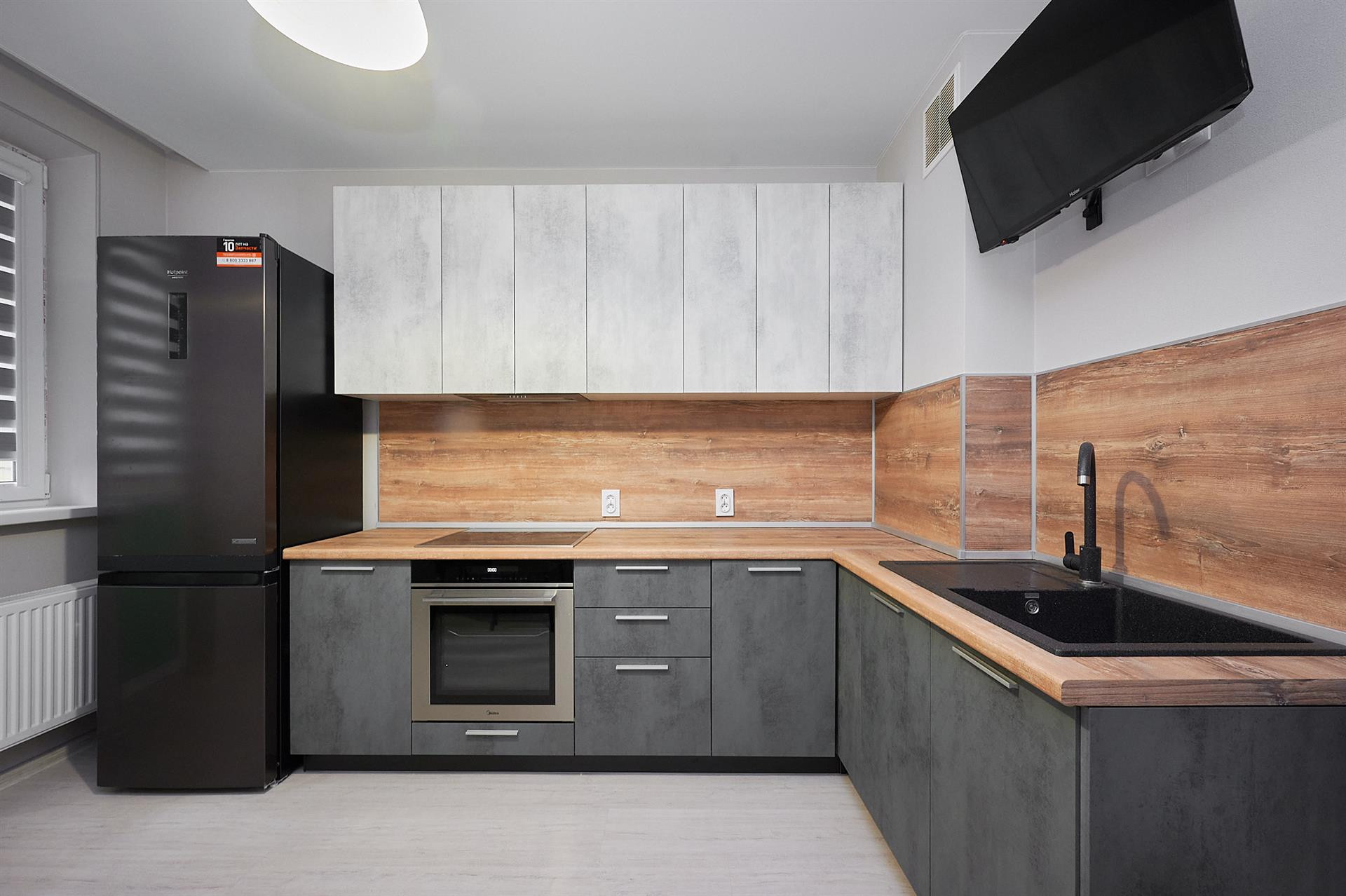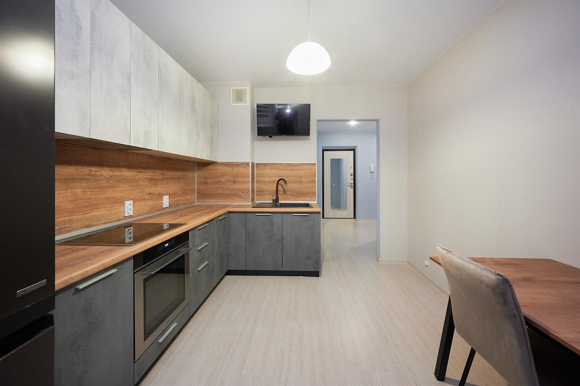 Установлена дорогая мебель и техника, хорошая сплит-система. Очень дорогая кухня (видно по фото). Остается практически все. Красивый вид из окна.