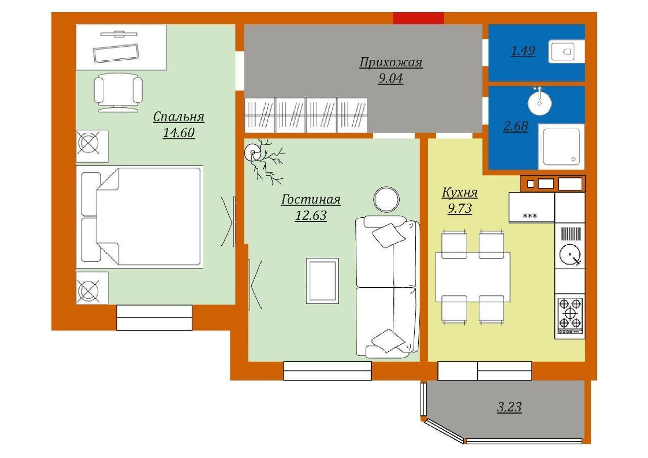 Общая площадь 53.3 м2