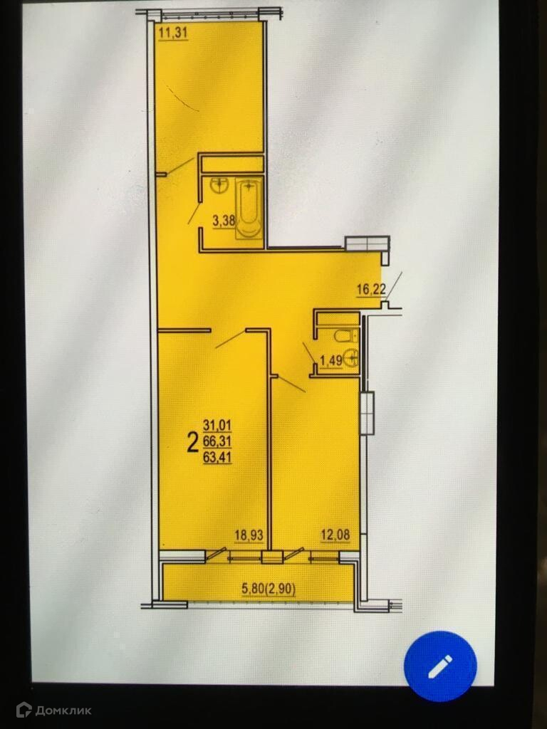 2-комнатная квартира, 63 м2, этаж 5 / 17, на продажу в Краснодаре, улица Дмитрия Благоева, 29к1