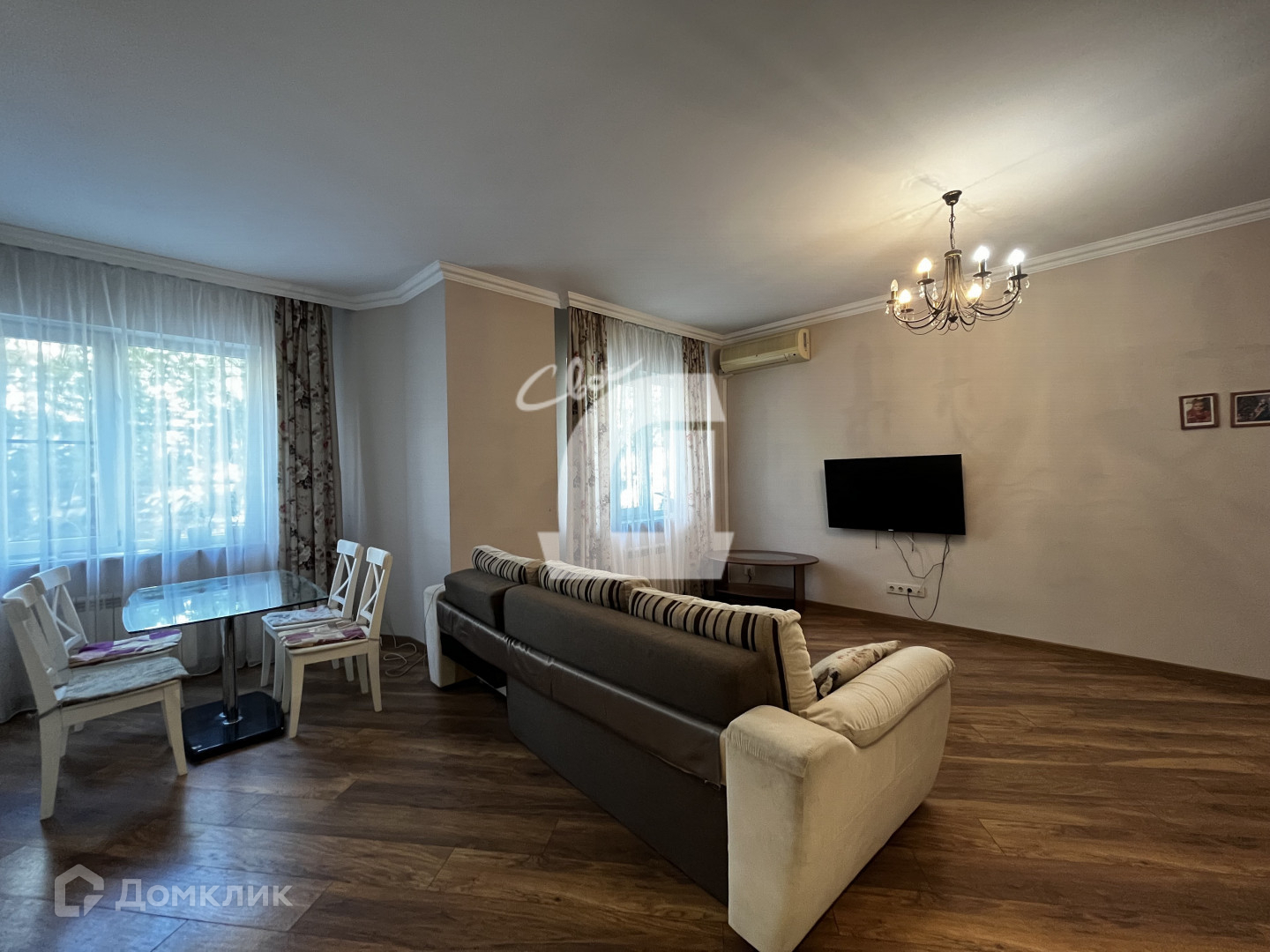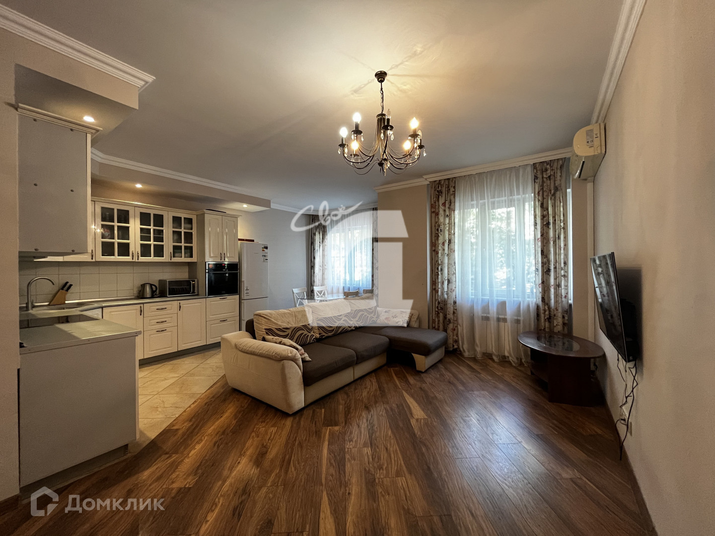 Квартира с ремонтом: пол ламинат и плитка (везде где плитка установлен теплый пол), стены под покраску, в спальне обои, в просторной прихожей- встроенный шкаф, встроенная кухня, 2 сплит системы, потолки гипсокартонной, в просторном сан. узле установлены ванная и душевая кабина.