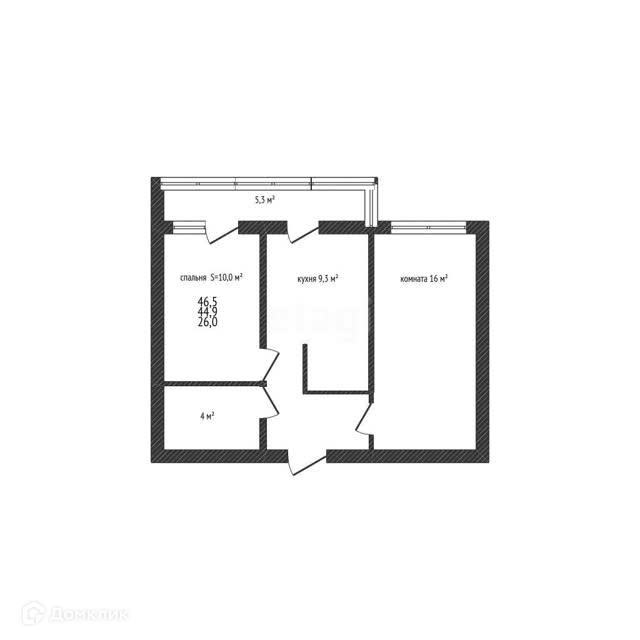 Общая площадь помещений 50,1 м2!