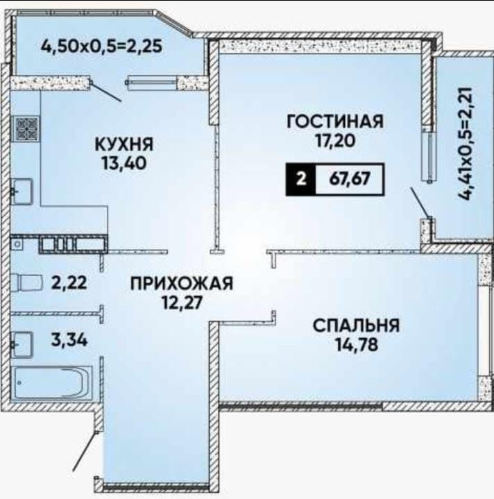 Общая площадь 67.67 м2