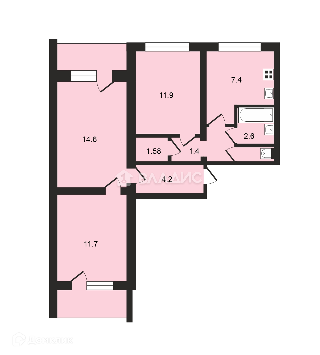 Площадь кухни 7.4 м2