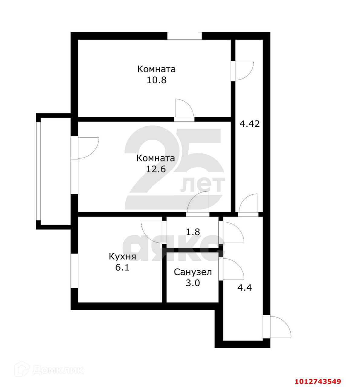 2-комнатная квартира, 44.5 м2, этаж 4 / 4, на продажу в Краснодаре, улица Бородина, 24