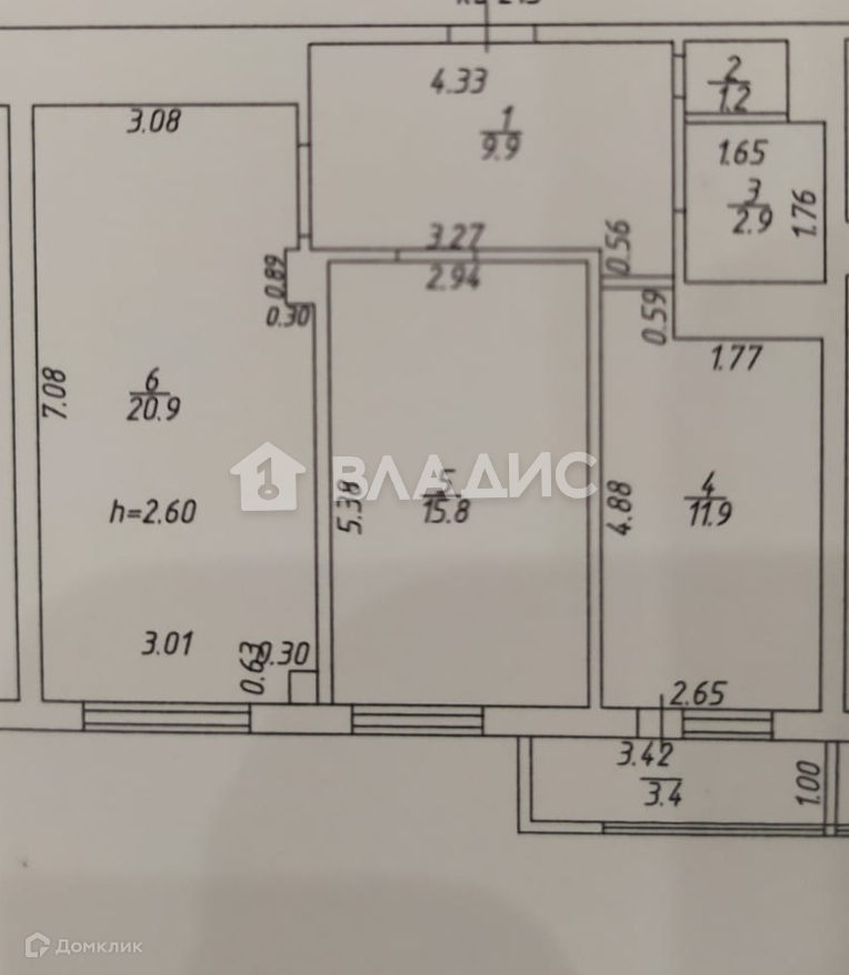 Общая площадь 62.6 м2