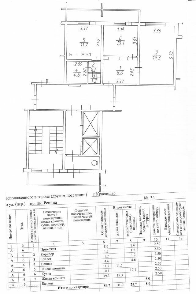 2-комнатная квартира, 64.7 м2, этаж 6 / 16, на продажу в Краснодаре, проезд Репина, 32