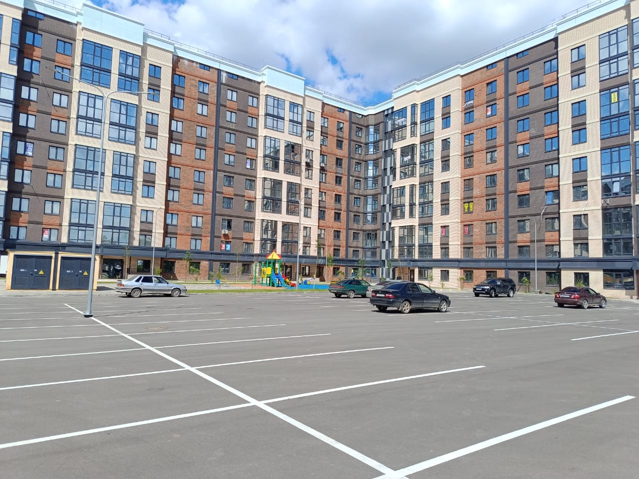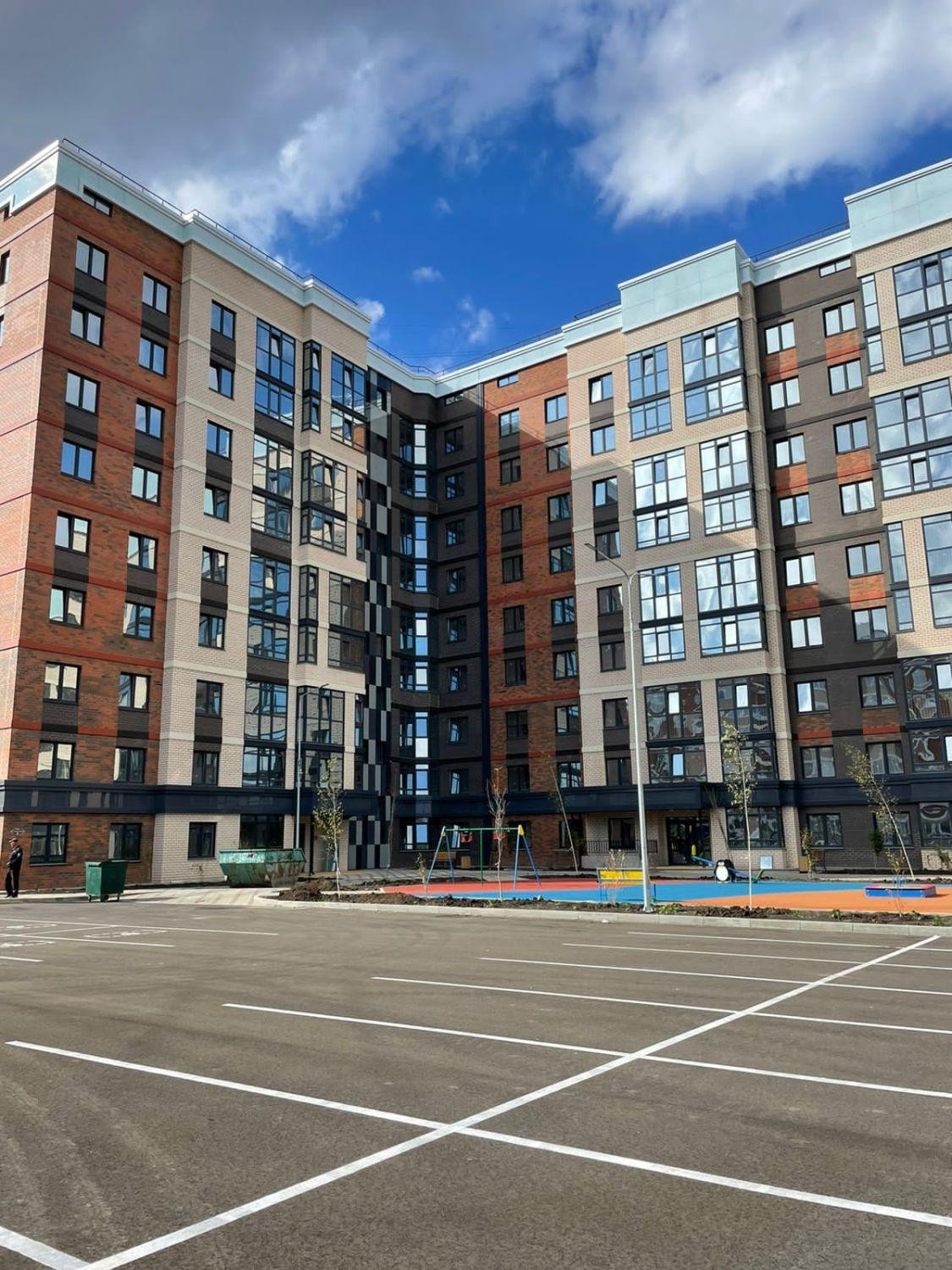 Благоустроенная придомовая территория с подземным паркингом и большими гостевыми парковками, детские и спортивные площадки,  прогулочными зонами для тихого отдыха. Напротив комплекса уже построены 2 детских сада и строится школа !