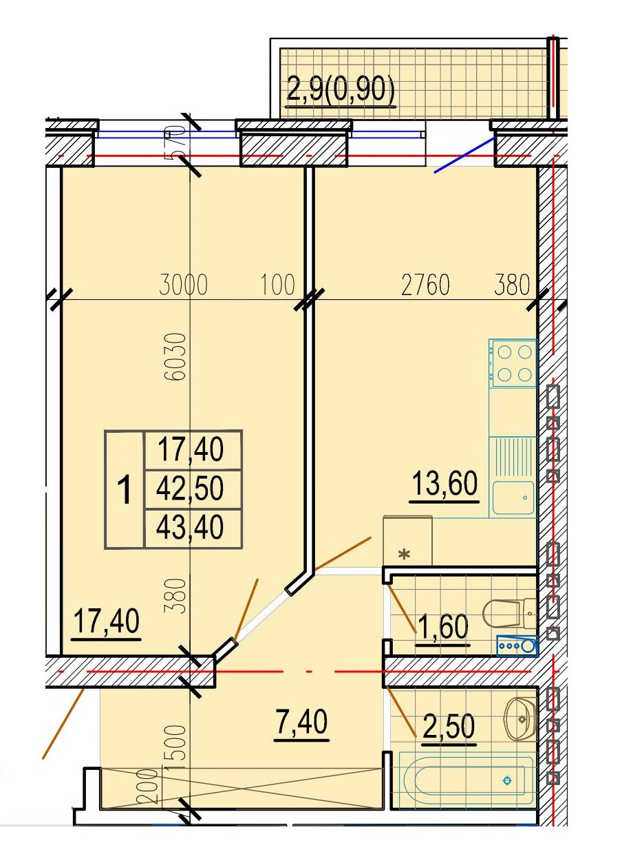 Общая площадь 43 м2
