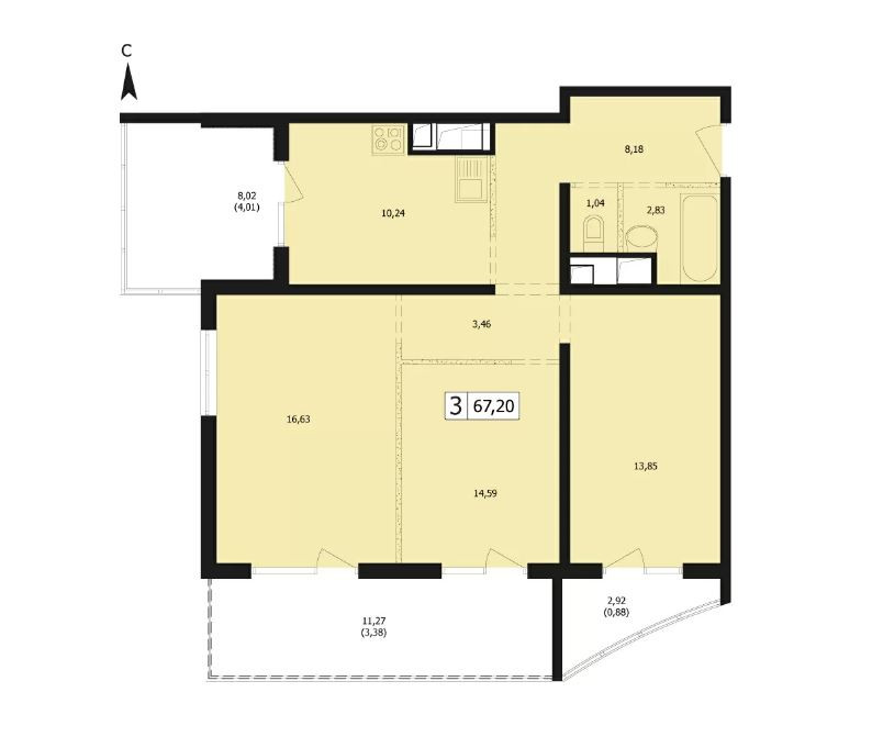 Общая площадь 67.2 м2