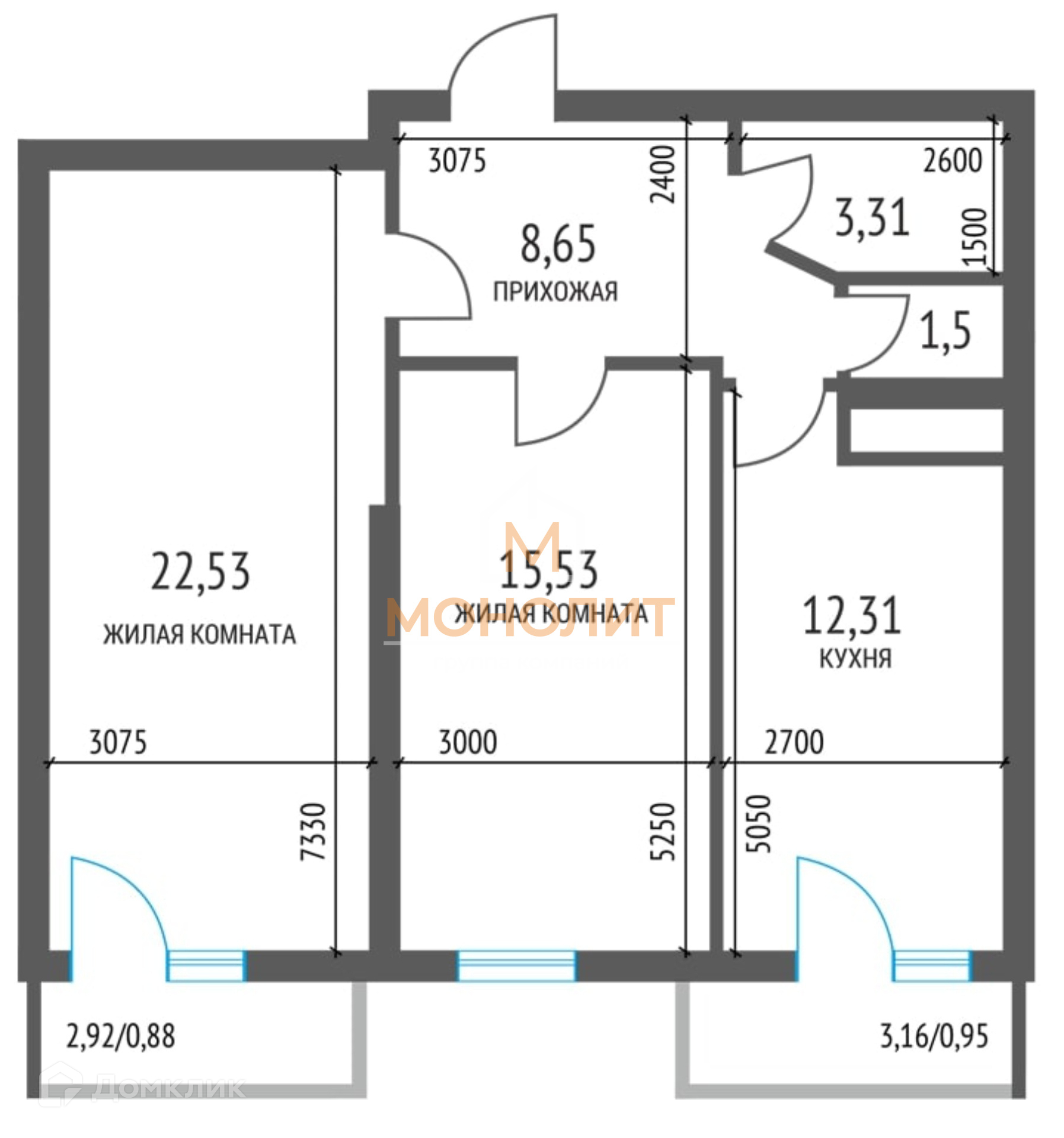 Общая площадь 65 м2