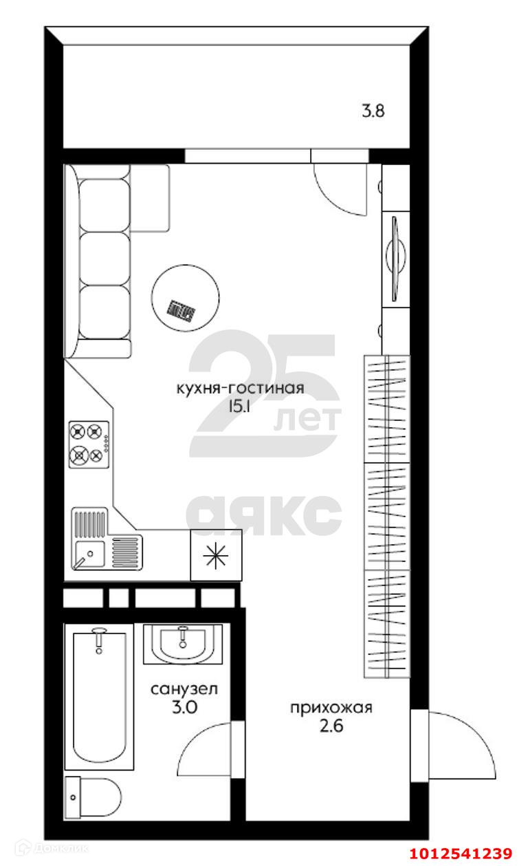 Квартира студия, 24 м2, этаж 5 / 8, на продажу в Краснодаре, улица Западный Обход, 38/1