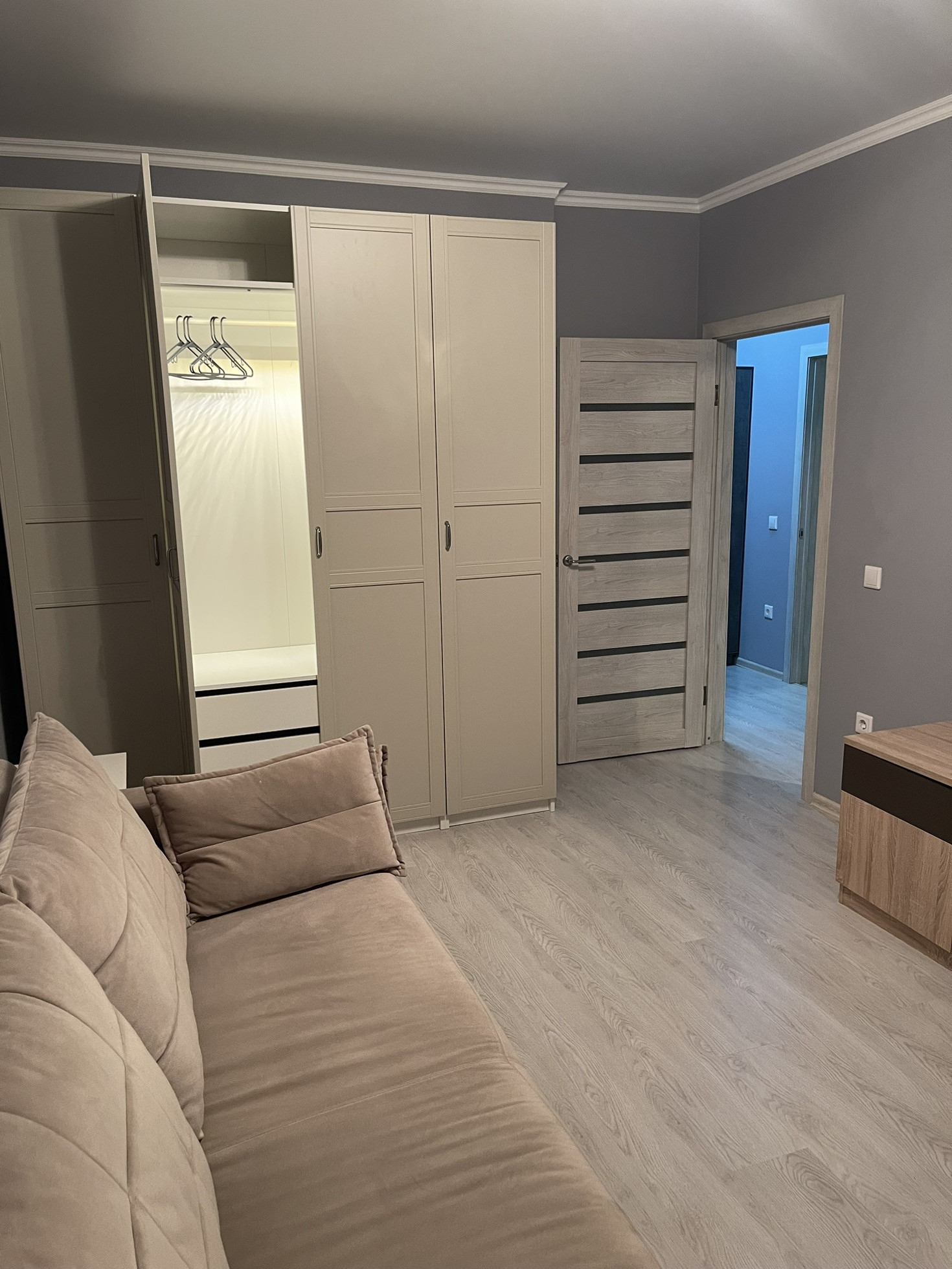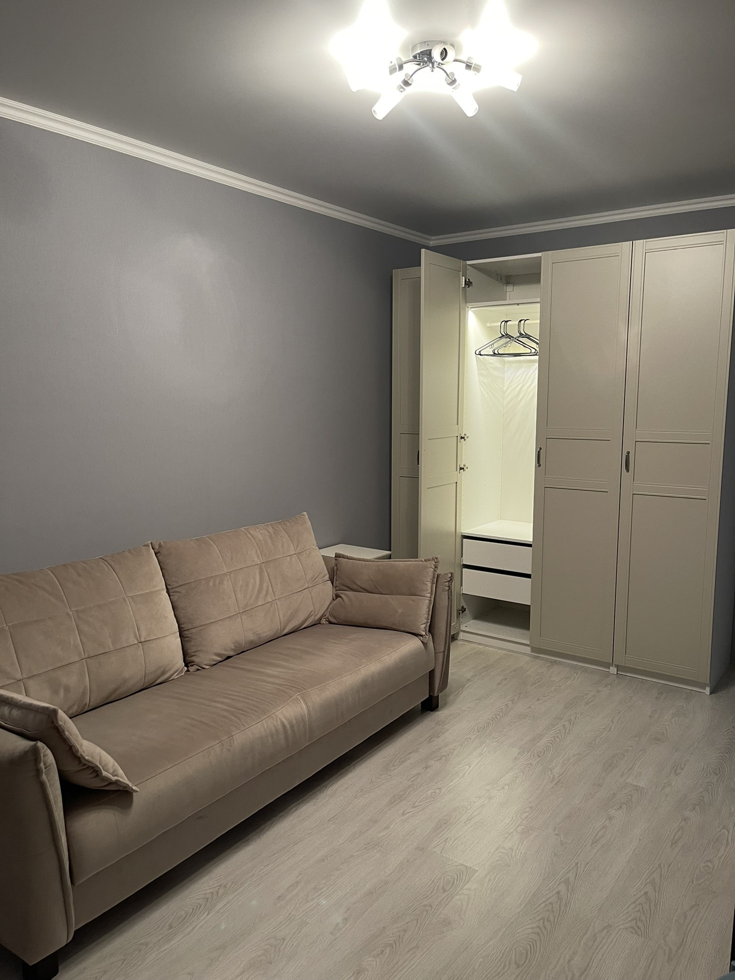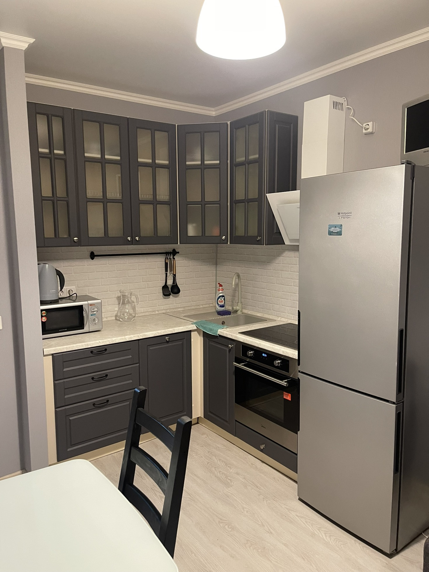 Продаём нашу уютную квартиру, оставляем мебель и технику. Шкаф Икеа с подсветкой, стильный диван, оборудованная прихожая, раскладной мини-диван на  кухне, тумба под ТВ, стол, стулья и шикарная кухня. Из техники: духовка, варочная панель, посудомойка, холодильник, микроволновая печь, стиральная машина, пылесос. Рядом транспортная развязка: трамваи, трол