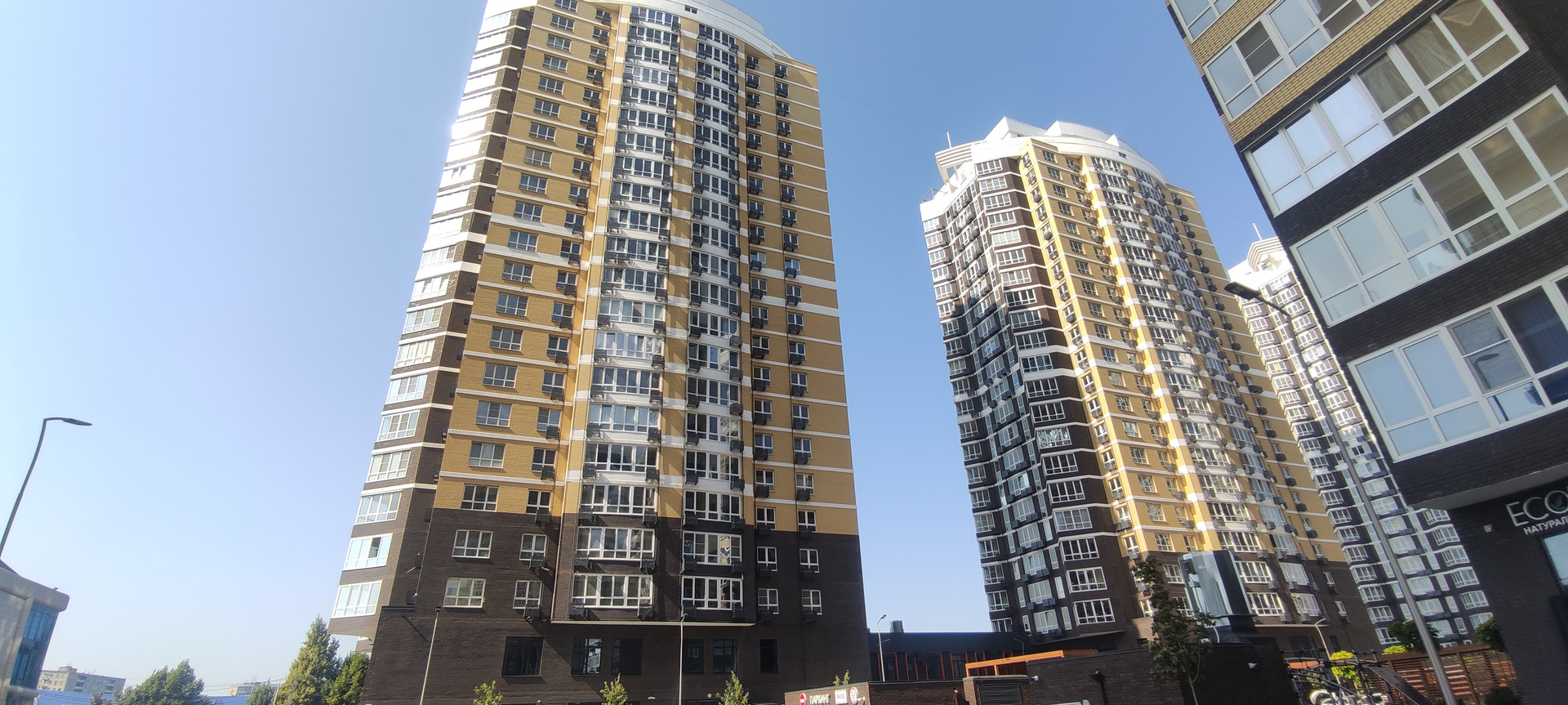 На первом этаже комплекса расположены коммерческие помещения.