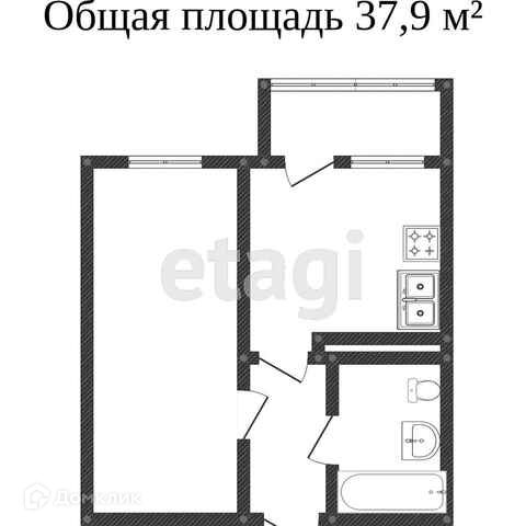 Общая площадь 37.7 м2