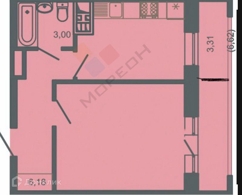 Общая площадь 41.1 м2