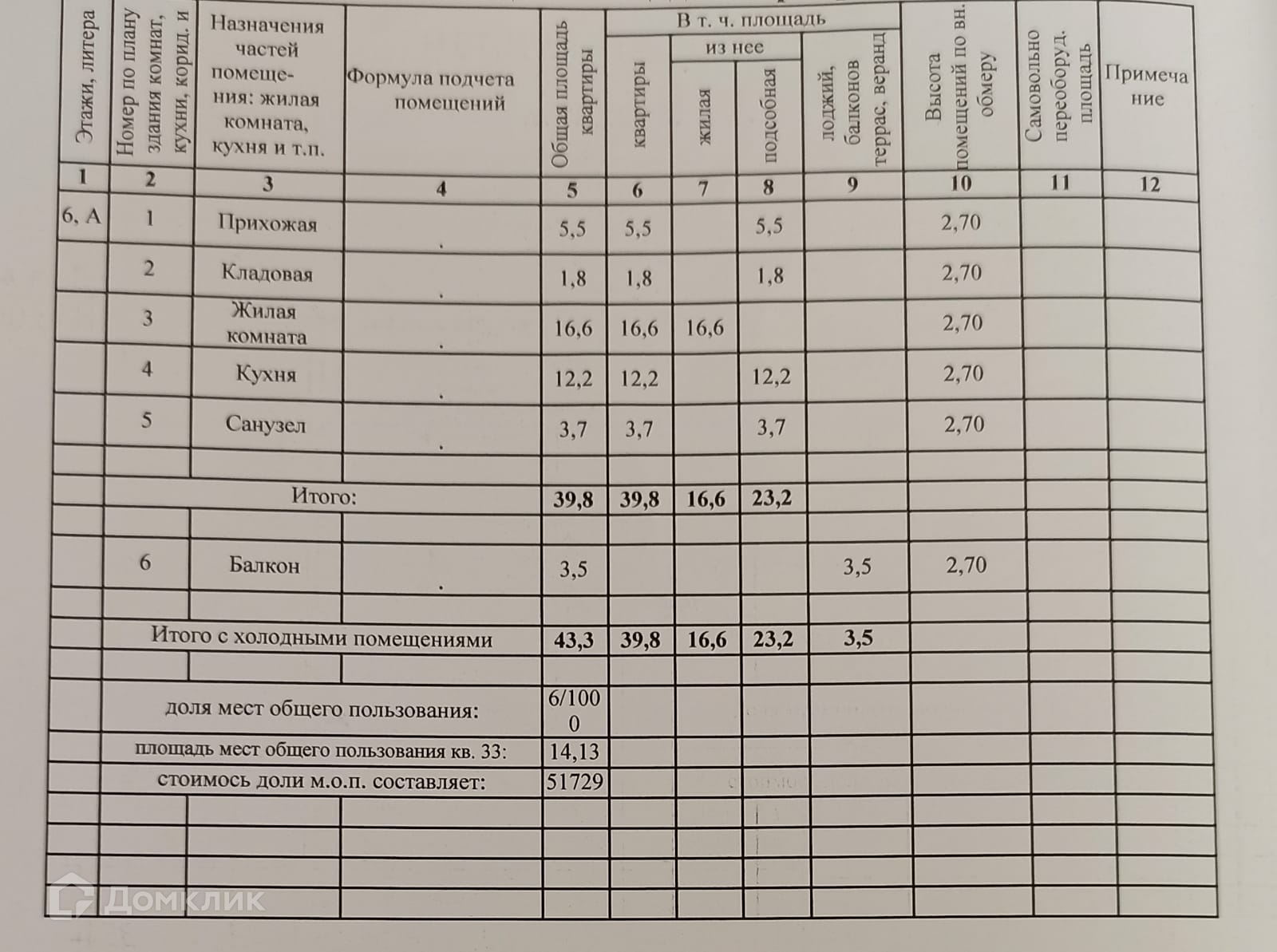 Высота потолков 2.7 м