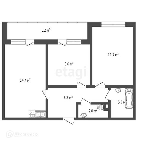 Площадь кухни 14.7 м2