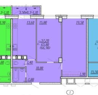 Общая площадь 67.4 м2