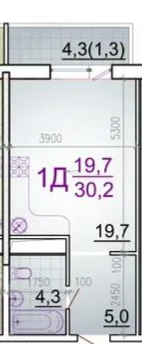 Общая площадь 29.1 м2