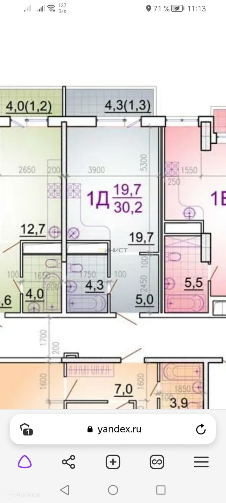 Балкон, лоджия 1 балкон