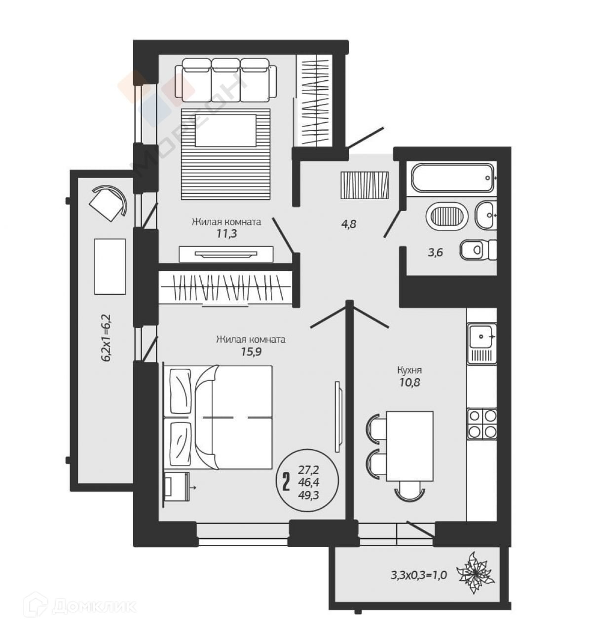 Жилая площадь 27 м2