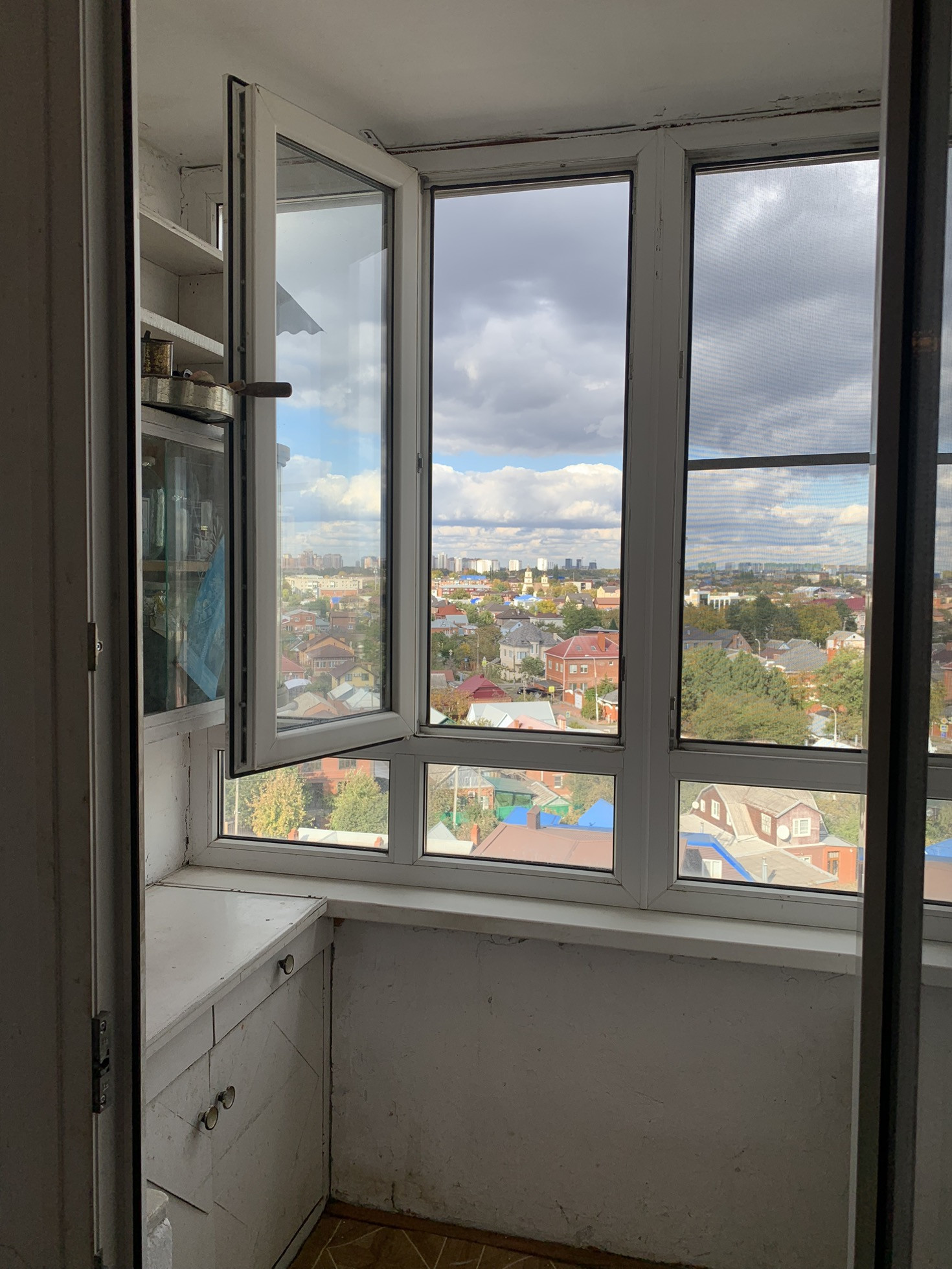 Вид во двор и на город. Если сделать ремонт хорошо подойдет под сдачу так и для собственного проживания.