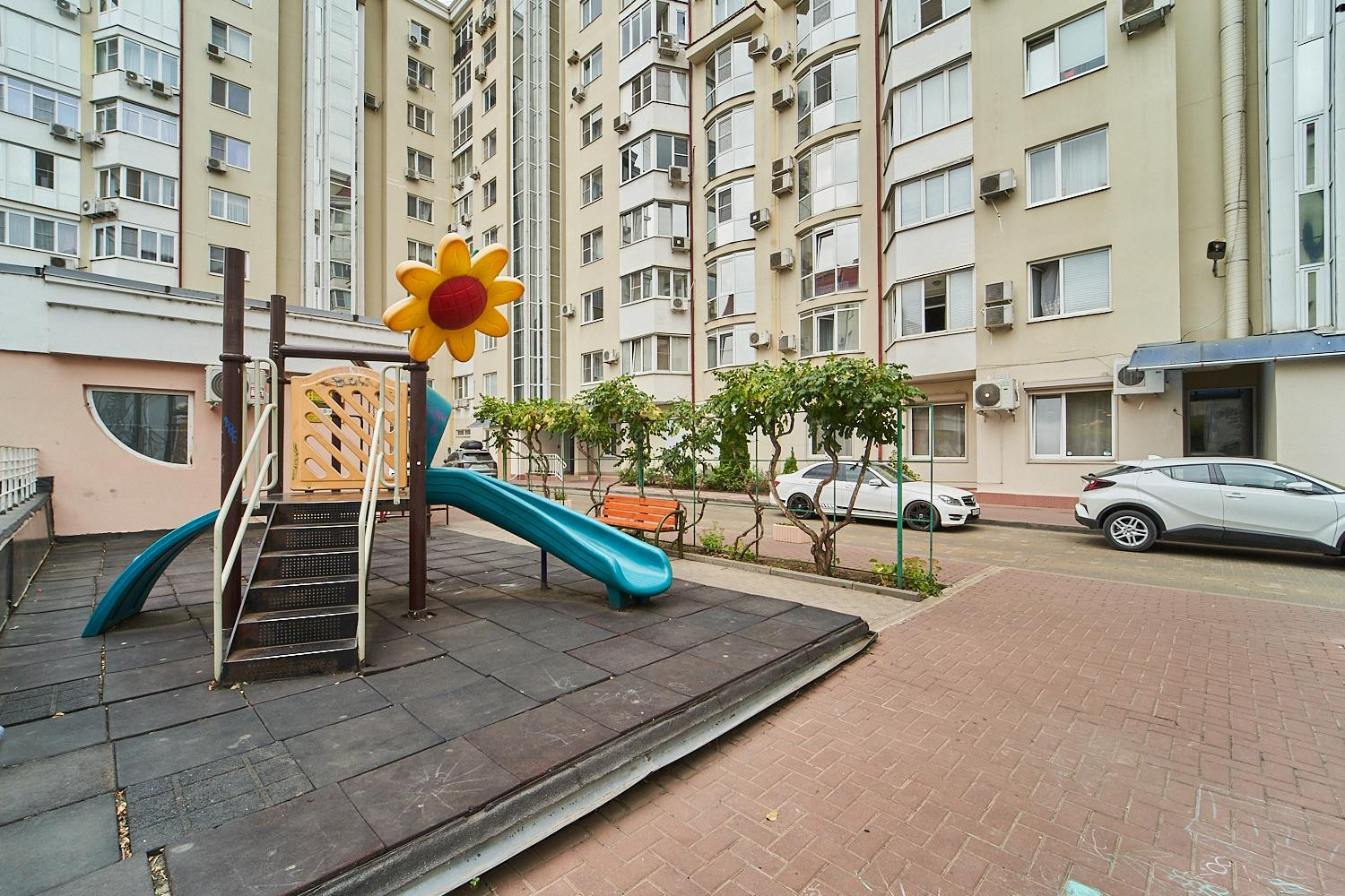 Красивый двор с ландшафтным благоустройством, всегда есть места для парковки.