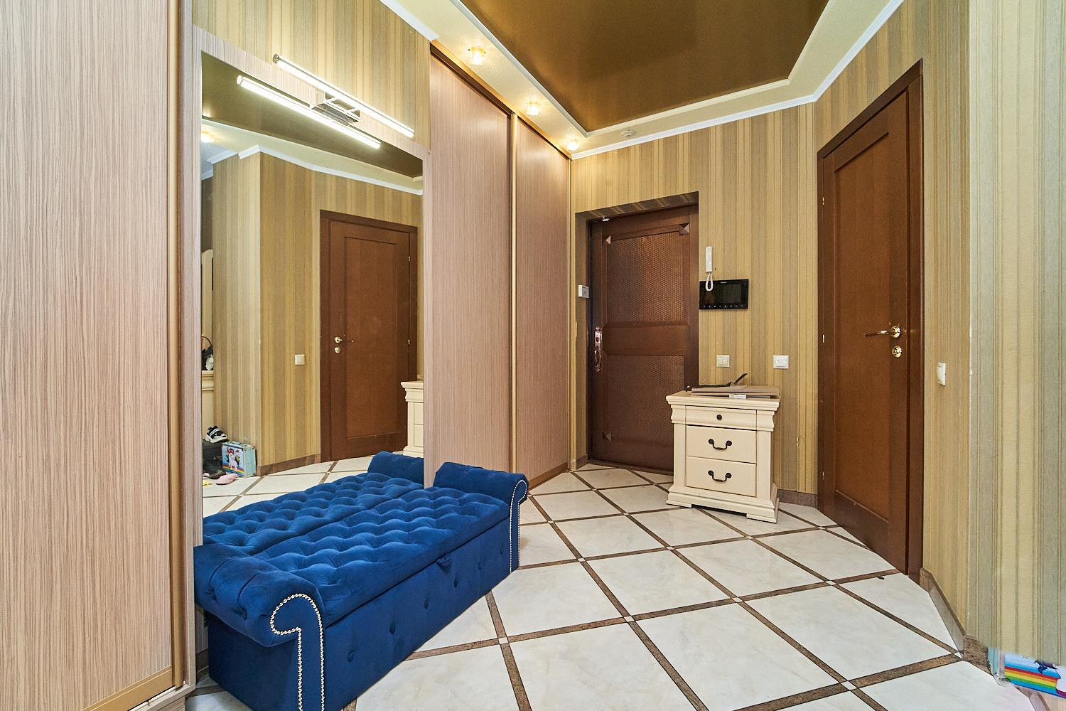 Квартира общей площадью 167,4 м2, расположена на 2 этаже 10-ти этажного монолитно-кирпичного комплекса с закрытой территорией, службой консьерж.