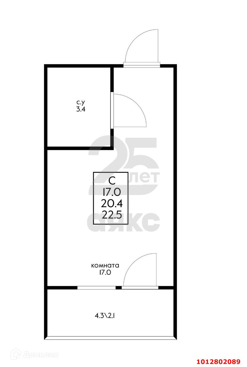 Квартира студия, 24 м2, этаж 15 / 17, на продажу в Краснодаре, улица имени Дзержинского, 110
