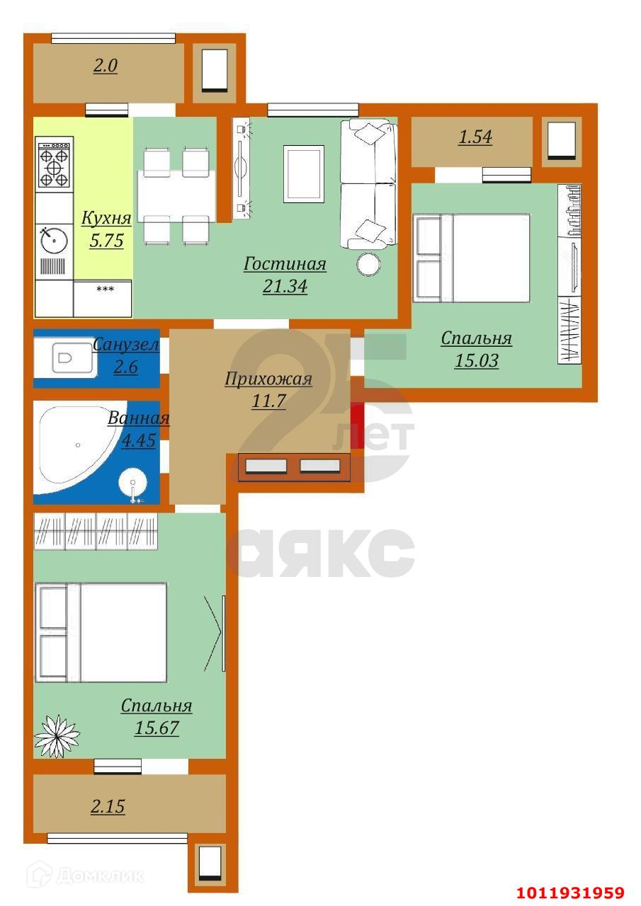 Удачная двухсторонняя планировка с хорошим зонированием. В квартире выполнен качественный базовый ремонт в светлой гамме. Просторные комнаты, два санузла, три лоджии. Расставляйте мебель и живите уже сегодня!  Код объекта: 1011931959.