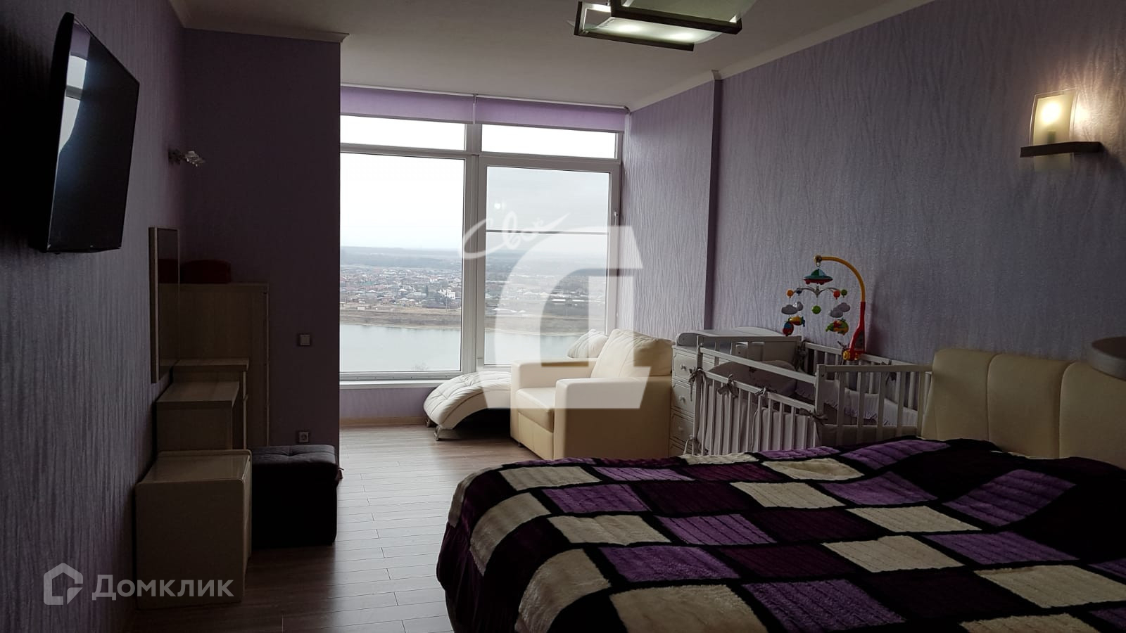 - три комнаты: видовая 28.2кв.м. с витражным остеклением и видом на Кубань, 18.8кв.м. (с зонированием: спальня + кабинет и выходом на видовую лоджию с витражным остеклением) и 17.4кв.м. с выходом на застекленную видовую лоджию и видом на город, также огромный холл 28.3кв.м. используемый как просторная гостиная