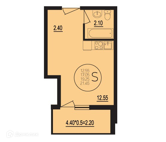 Жилая площадь 12.55 м2
