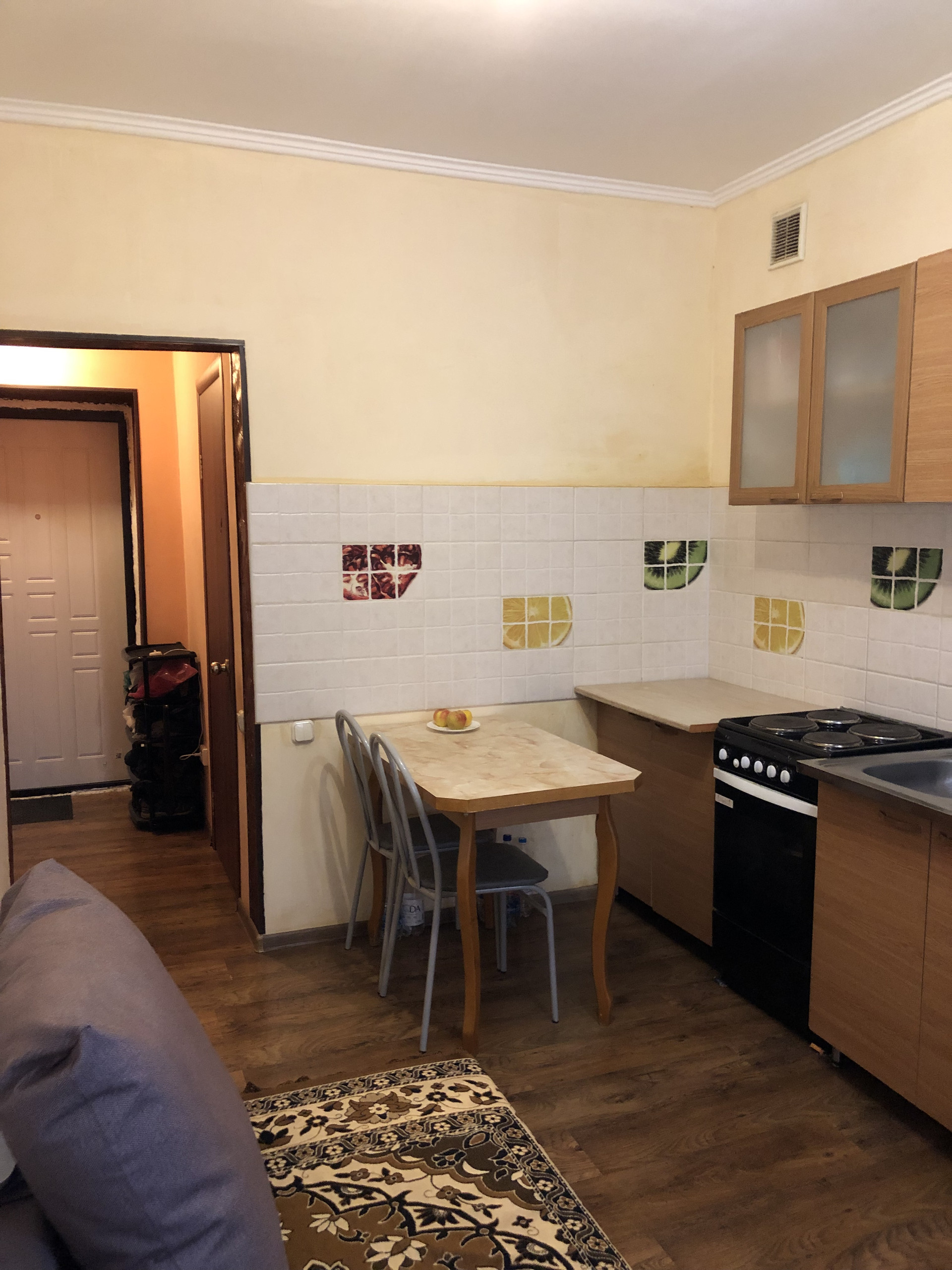 Квартира продается в связи с переездом, с простым ремонтом. В квартире остаётся мебель, бытовая техника, чайник, посуда.