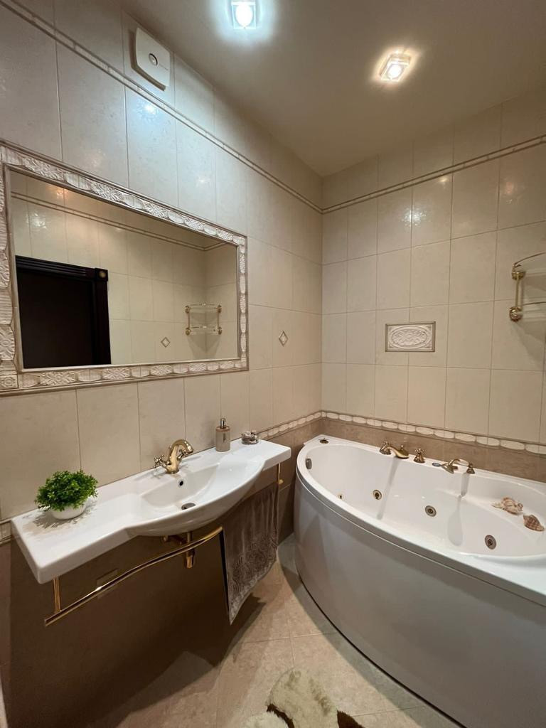 Продам двухэтажную  пятикомнатную квартиру с евро ремонтом в доме бизнес класса в центре КСК  с удобной транспортной развязкой. Планировка квартиры: 3 отдельные спальни на втором этаже, санузел с душевой, просторный коридор. На 1ом этаже современная кухня в классическом стиле с использованием качественных материалов и укомплектована техникой: холодильник, посудомоечная машина, варочная панель, вытяжка, духовой шкаф, микроволновая печь. Также на 1ом этаже отдельный кабинет, просторная гостиная, ванная, туалет и балкон со стороны кухни.