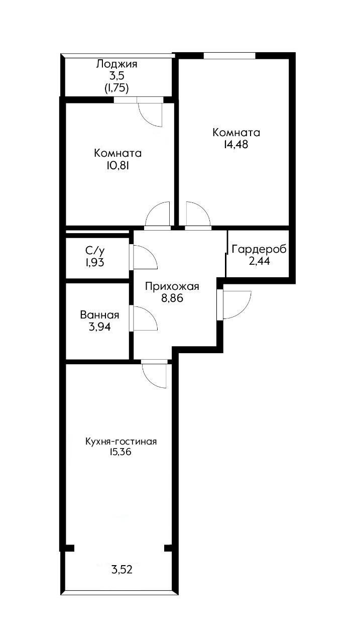 Площадь кухни 15.36 м2