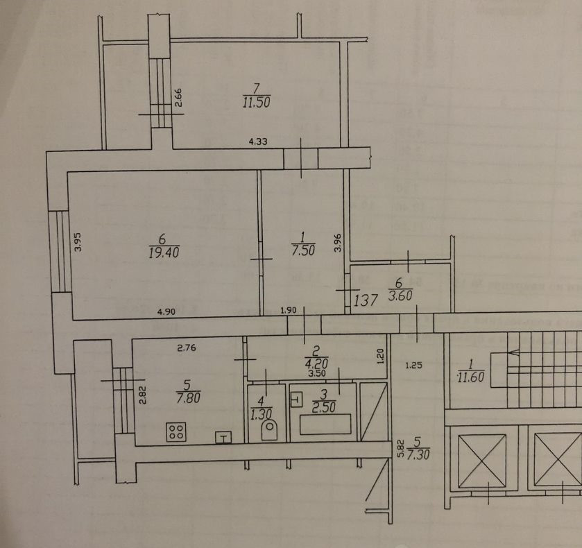 Общая площадь 54.9 м2