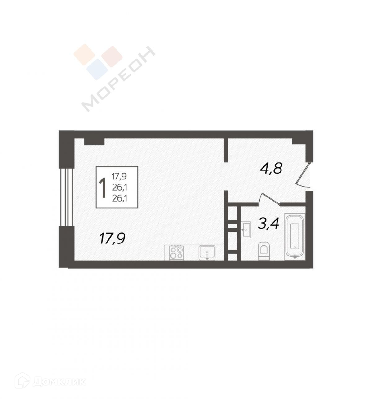 Общая площадь 26.1 м2