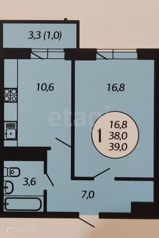 1-комнатная квартира, 38.5 м2, этаж 3 / 18, на продажу в Краснодаре, улица Гидростроителей, 59/2лит1
