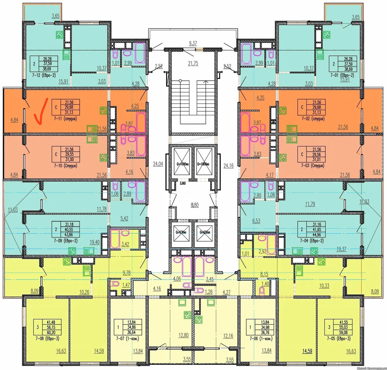 Квартира студия, 31.28 м2, этаж 22 / 25, на продажу в Краснодаре, улица Автолюбителей, 1Дк3