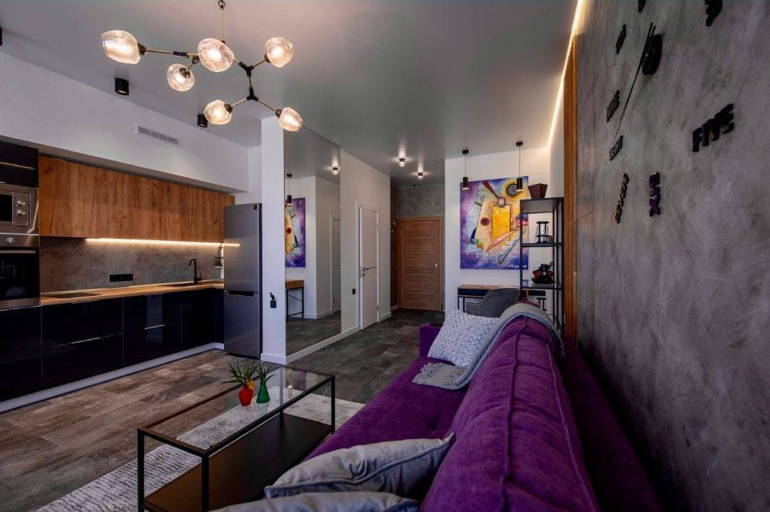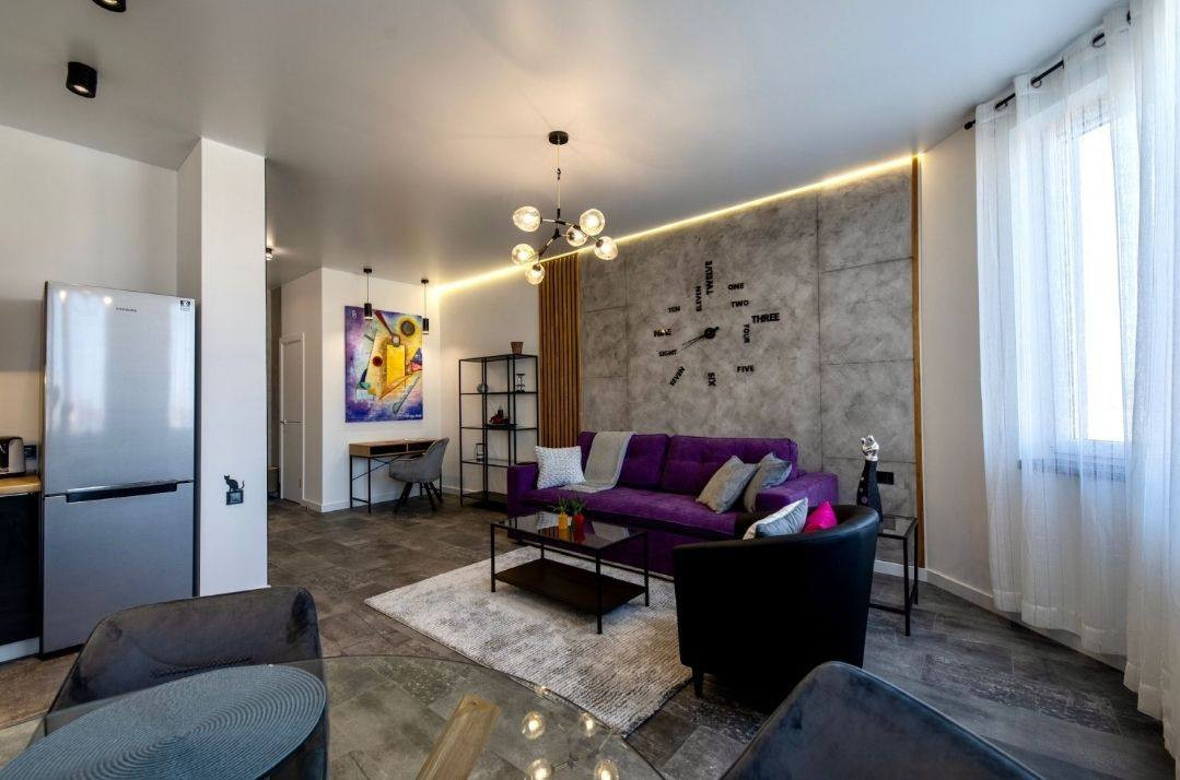 Главная комната студии идеально подходит для отдыха и сна. Она просторная и уютная, что делает ее идеальным местом для релаксации после долгого дня.