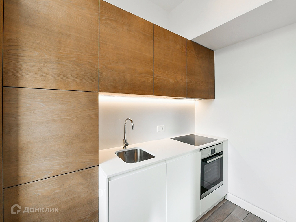 Встроенная кухня с бытовой техникой (варочная поверхность, духовой шкаф, холодильник)