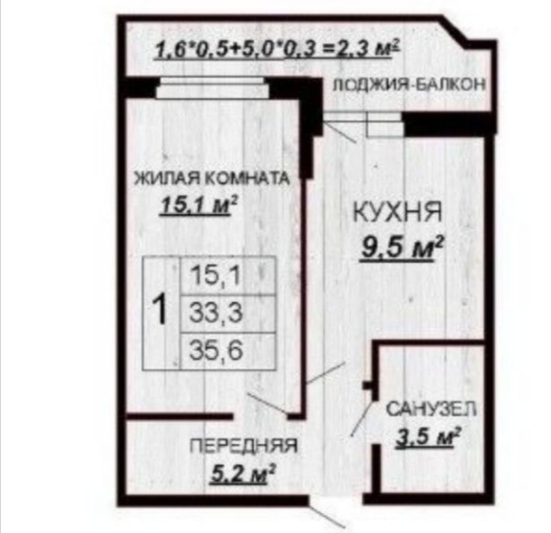 Общая площадь 36 м2