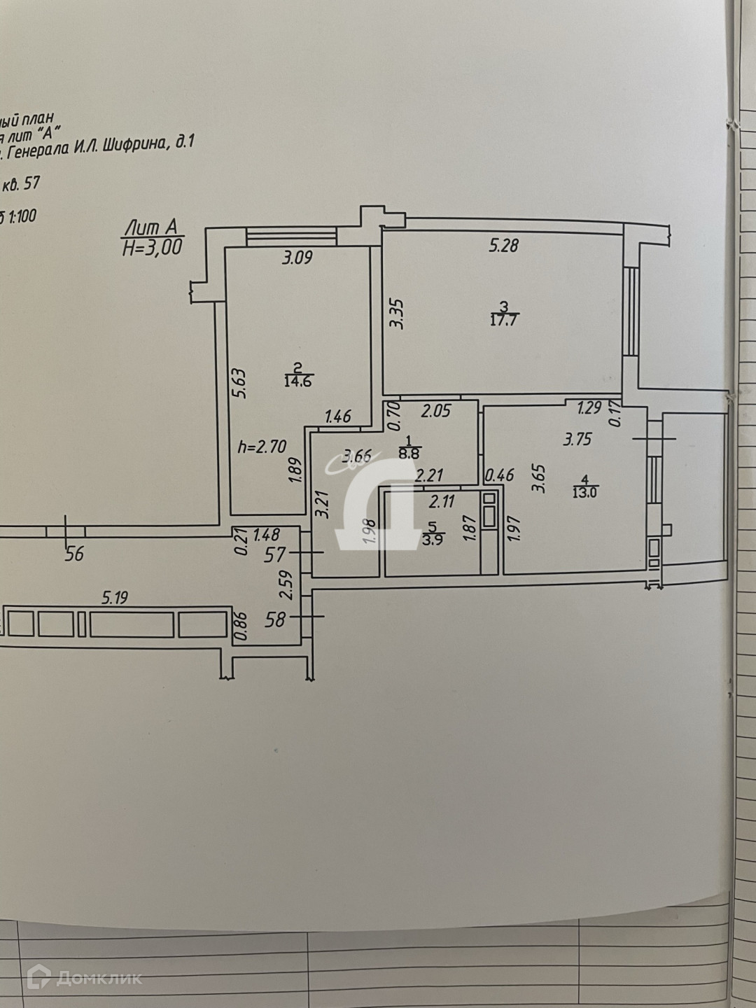 Общая площадь 58 м2